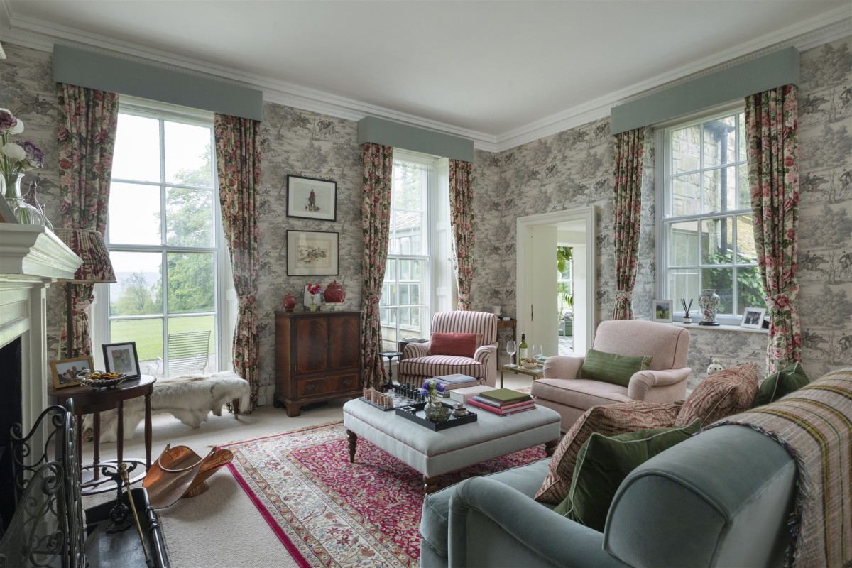 Set at the centre of a historic estate, The Hall is surrounded by sweeping lawns, ancient trees, and uninterrupted views across the Vale of Whittingham. Inside, three comfortable living rooms — two with open fires, one with a wood burner — invite you to gather, read, or simply enjoy the stillness.
